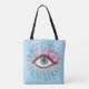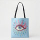 Psykedeliskt öga över hela påsen med en färgfull illustration av en konstig blå öga med stora böjda rosa-ögonfransar, ljusblå tårar som flödar överallt och många rosa och grönt inslag - utökning av ögonfransarna.