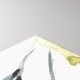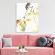 Löv Gren Triptych I av Jennifer Goldberger. Vattenfärgade droppar i gult, grönt och rödaktig rosa skapar mjukt löv på grått och svart grenar i mörk.
