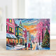 En mysig modern konstskildring som visar en charmig vintergata med starkt färgade hus, ett vackert dekorerat julgran och människor som promenerar i det lätt fallande snöfallet. Användningen av starka pastellfärger ger en varm och inbjudande touch till den kalla vintermiljön och skapar en festlig och glad atmosfär. Detta fantasifulla verk fångar semesterns magi och blandar nostalgi med en samtida stil.