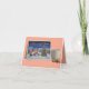 En hjärtvärmande scen med ett vikt julkort lutat mot en enfärgad vit bakgrund. Kortet visar en snöig, klassisk julby på natten, med upplysta stugor, ett dekorerat julgran och Tomte i sin släde dragen av renar som korsar en stenbro. Texten på kortet lyder "Önskar er en glädjefull jul" och "Må era dagar vara fyllda av värme, kärlek och glädje". Till höger om kortet står en ångande vit mugg med varm choklad eller kaffe och två pepparkaksgubbar. Bakgrunden är rent vit, vilket skapar ett rent, isolerat studioutseende.