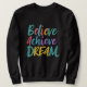 T-shirt-designen har den inspirerande frasen "Tro Achieve Dream" i ett dynamiskt, flerfärgat teckensnitt. Texten är djärv och öga-infångande, och den står mot en minimalistisk bakgrund. Utformningen förmedlar ett budskap om hopp, beslutsamhet och ambition, som uppmuntrar väktarna att sikta högt och eftersträva sina drömmar med passion.