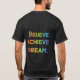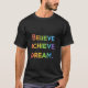 Den här inspirerande t-shirt-designen innehåller frasen "Tro Achieve Dream" i fet, flerfärgad brev mot en dynamisk bakgrund med abstrakt. Utformningen förmedlar ett budskap om hopp, beslutsamhet och drömmarnas kraft att forma sin framtid. Det uppmuntrar väktarna att tro på sig själva, sätta upp ambitiösa mål och arbeta hårt för att nå sina ambitioner.