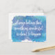 Tro alltid att något underbart är på väg att hända genom att säga inspirerande citat med ett positivt budskap och en blå vattenfärgsbakgrund i stänk.