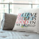 "Tro att det finns bra i världen", inspirationcitatet övertäckte med vackra blå vattenfärg träd