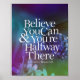Tro att du kan och du är halvvägs dit ~ Theodore Roosevelt. Den här inspirerande offertduken och poster är underbar som självmotiv, eller som en gåva till vänner och familj, så att de inspireras varje dag när de ser ut som citatet. Det är också underbart som ett motivationsmässigt verktyg att inspirera ditt team vid ställe för att sträva efter excellens. Citatet visas i skarp, skarp text över en vattenfärg för abstrakten av en fjäril på en blomma över en övertoning med flera färgader.