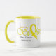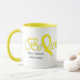 Gulligt ljust - den gula muggdesignen är så kallt. Färgen blandar med designen av muggen. Dess gula banddesign föreställer sarcoma-/bencancermedvetenhet. Perfekt för några advocacyhändelser och presentartiklar.