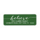 Tro helt enkelt att vitskriptövertäckning på Färg-bakgrunden i Solid Grönt Julhälsningar kortets Returetiketter. Elke Clarke© för MonogramGallery. Annan tillgänglig färg