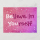 En rosa glittery bokehbakgrund som presenterar det motivational, formulerar "tror i dig", med vara särar du markerat i vit, därför att alla vi behöver lite en självförtroendeökning nu och därefter. Överför till en vän och visa dem dig omsorg eller håll för dig! Du kan ändra stilsortsstilen, och färger, om du önskar, genom att klicka på ", skräddarsy den".