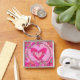 Tro inspirerande Söt av Blommigt Rosa Fyrkantig Silverfärgad Nyckelring