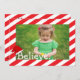 Snygg röd och vit randig godisstav julkort. Lägg bara till ditt familjefoto eller ditt barns foto i det personliga området.