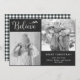 Det här trendiget och det roliga helgdag säger "Tro" i handskrivet manusskript i kritvit färgad, med ett motsvarande botaniskt julskript gren. Lägg till två av dina favoritpersonliga foton i den svarta, krita, utseendebakgrunden. Baksidan av kortet har en svart och vit gingham plaid mönster.