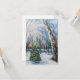 Ett vackert trimmat Julgran ligger i mitten i skogen och skiner under en solbränningsdag på vintern. Djupt snö får ljus och antydningar på fotavtrycken på den godhjärtade själ som kom in i skogen för att hänga ljus och prydnadsföremål på grenar för att göra lite julmagi. Ett julkort.