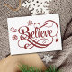 Tro julkort i djupt rött med snöflingor och stjärnor. Anpassa baksidan med din egen ord. För fler kort, se vår samling julkort.