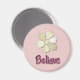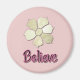 Vi behöver alla något att tro på! Men ta inte för långt och tro på allt du ser eller hör! Ha hopp och tro på dina drömmar. Det är hemligheten att glädjas. Denna gigantiska rosa blomma är en kollage som jag gjort med dekorativ väv delarare som petaler på en akrylmålad duk. "Tro" på ord framhävs nedan i en ljus rosa.