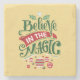En sten underlägg med en illustration av coolan. Det står att tro på magiken i finare. Dekorerad med christmas bollar.