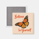 Hiss är själsfrände med denna inspirerande positiva bekräftelselagnet. Underbar som gåva eller personlig självaktning! I den här designen ingår en ljus orange och en svart marschfjäril och texten "Tro på dig själv".