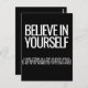 Motiveringellt vykort med det djärva budskapet "Tro på dig själv" ovanför ett upplyftande citat: "En fågel sitta på en träd är aldrig rädd för att gren bryter, eftersom dess förtroende inte finns i gren utan i dess eget vingar." Perfekt för uppmuntran, självförtroende eller en tankeväckande ton för att inspirera andra. Minimalistisk svartvit design, perfekt för personlig tillväxt, motivation, eller gåva till dem som behöver en positiv impuls.