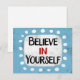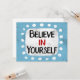 "Tro på dig själv" är ett sött inspirerande eller motiverande citat med en vit accentform omgiven av vita texturerade vismpunkter.