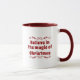 Kaffet mugg säger: "Tro på julens magiska magi" i ett rött typsnitt på båda sidor.