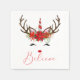 Den här söta helgdag napkin-designen har en enhörning för julrenar, dekorerad med festliga poinsettimiblommor, och sport en söt röd och vit enmajshorn för candy cane! Under står det "tro" på festiv röd handskriven skrivstil. Copyright The Helgdag Shop, alla höger reserverade.