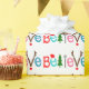 Den här festliga designen innehåller texten "Tro" med flera färgader och en julhatt, Julgran, antlar och rött näsa som dekorativt inslag.