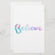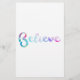 Ord "tror" skrivet med kursivt typsnitt. All digital bild med vattenfärgseffekt tillämpad på design.