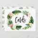 Roligt- och festkort med bröllop-tecken med vattenfärgade blommor löv (hibiscus, handflatan löv, orkidéer, frangipani) och modern kalligrafi. Detta kommer att vara perfekt för bröllop, möhippor och liknande evenemang.