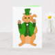 Den gulliga nyckfulla Sts Patrick dagdesignen på bekläda av detta kort presenterar en orange tabby katt som ha på sig en grön trollhatt och kostym. Hatten dekoreras med en spänna fast och ett fyrklövert eller en shamrock. Denna lyckliga katt inspireras av manekinekoen, den lyckliga katten eller förmögenhetkatten som är populär i asiatiska länder och visas ofta i asiatisk ställen av affären. Enligt legend om en lycklig katt har dess lyftta vänstersidatass, tilldrar den kunder. Om dess högra tass lyfts, tilldrar den bra förmögenhet och pengar. Om båda tassar lyfts, tilldrar kan den båda och också föreställa skydd. Sammanslutningar för denna unika design turen av irländare med turen av manekinekoen. Insidan av kortet presenterar en mindre version av katten. Nedanfört visas katten hälsningen "dag för lyckligSt. Catrick'sen" i mörk - grönt. Denna hälsning fodrar är anpassadet och kan ändras för att passa dig. Nedanfört fodrar detta är en anpassade "från" fodrar i svarten som du kan personifiera som väl. Insidan av kortet har också ett festligt ljust - grön bakgrund.