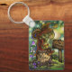 Whimsical Fantasy Art, Troll on a stump with a "No Humanz" sign, makes a great goblincore Keychain!