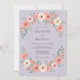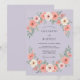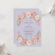 Denna design har en mjuk lila bakgrund prydd med ömtåliga blommotiv. Frodiga persikorosa rosor och krämfärgade blommor balanseras av dämpade salvia gröna blad för en romantisk estetik. Den luftiga kompositionen skapar ett graciöst utseende perfekt för en säsongsbetonad vår- eller sommarhändelse. Färgpaletten kombinerar pastorta toner för en sofistikerad och eterisk känsla.