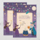 Bjud in dina små trollkarlar till en magisk fest med denna Wizards & Witches födelsedagsinbjudan! Med förtrollande trollkarlar, lekfulla häxor, svävande trollformelböcker, lysande trollstavar och gnistrande stjärnor, fångar denna design ett fantasifullt tema. De rika färgerna lila, blå och guld, i kombination med mystiska ljuseffekter, skapar en rolig och magisk atmosfär. Ett tomt utrymme i mitten låter dig enkelt lägga till födelsedagsdetaljer som datum, tid och plats. Perfekt för barn- eller tonårsfödelsedagsfester med en magisk twist!