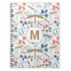 Monogram Trollslända Mönster Flerfärgad Anteckningsbok. Trendig anteckningsbok med flera trollsländor på omslaget i guld, blå, kräm, korall, grönt och burgunder. Originell och unik design från Jenn's Emporium. Lätt att anpassa denna anteckningsbok med din initial.