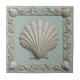 This 'Trompe L’oeil Marine Life' clam shell tile, combines seafoam green, sandy beige, and ivory with subtle coral and taupe undertones, creating a serene, timeworn look that feels both elegant and organic. The illusion of raised relief detailing gives the tile a sculpted appearance, framed by ornate flourishes reminiscent of vintage maritime carvings. Ideal for coastal kitchens, bathrooms, or accent walls, it adds a touch of coastal charm to any space. Search ID1190a thru j to see all the striking coastal elements in this design set. Note: design may contain generative content