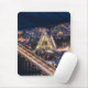 Resefoto av den arktiska katedralen och Tromsø-bron under natt. Tromsø ligger kusten i norra Norgen, Skandinavien. Photo © Sebastian Mask.