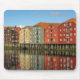 De traditionella gamla norska lagren som avspeglar floden Nidelvas vatten i Trondheim. Det är den tredje folkrikaste staden kusten i Norgen, Skandinavien. Photo © Sebastian Mask.