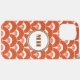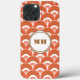 Iphone case har en elegant och snyggt guld med orange tonad tropisk abstrakt art deco geometrisk skaloped kant fläkt sömlös mönster på vit bakgrund med anpassningsbar för att lägga på ditt eget initialer eller monogram. Perfekt för kvinnor och flickor eller någon speciell, sporadiska och julhelg gigabyte som tycker om tropiska geometriska skalopade kant färgstarka fläkt mönster.
