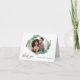 Tack till gästerna i bröllop med ett unikt fotokort med en oval utgång i ram omgiven av lush tropical banan löv. Modern tacktext är skriven på kortets nedre lämnat sida och en textmall för briden och rummets namn finns på kortets nedre höger. Ett exempel på ett tackmeddelande har tagits med på kortets insida som du kan redigera med ditt eget ord, eller ta bort texten om du vill lämna skriva på tackkortet. Byt ut exempelfotot mot önskad bröllop, smekmånad eller annat foto efter eget val.