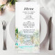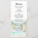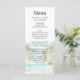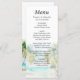 Den här eleganten och den vackra menyn bröllop med vattenfärg har en strand, blå himmel och handflatan träd. Texten kombinerar handskript och sans serif typsnitt för en snyggt och ett modernt utseende. Det här är perfekt för en sommarstrand eller ett tropiskt destinationsbröllop.