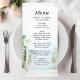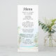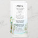 Den här eleganten och den vackra menyn bröllop med vattenfärg har en strand, blå himmel och handflatan träd. Texten kombinerar handskript och sans serif typsnitt för en snyggt och ett modernt utseende. Det här är perfekt för en sommarstrand eller ett tropiskt destinationsbröllop.