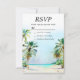 Den här eleganten och det vackra bröllopet OSA har en strand, blå himmel och handflatan träd. Texten kombinerar handskript och sans serif typsnitt för en snyggt och ett modernt utseende. Det här är perfekt för en sommarstrand eller ett tropiskt destinationsbröllop.