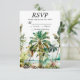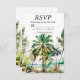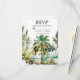 Den här eleganten och det vackra bröllopet OSA har en strand och handflatan träd. Texten kombinerar handskript och sans serif typsnitt för en snyggt och ett modernt utseende. Det här är perfekt för en sommarstrand eller ett tropiskt destinationsbröllop.