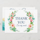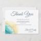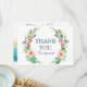 Tack gästerna för presenterna och för att ni närvarade vid er bröllop med de tropiska tackkorten. De har en vit bakgrund som du kan anpassa för att vara valfri färg. Ord "Tack så mycket" är inramat i tropiska blommor. Baksidan innehåller en havsvåg som kraschar på strandens yta. Anpassa ett meddelande på kortets baksida eller ta bort det om du vill ha ett tomt kort för att skriva ditt eget meddelande på.