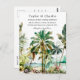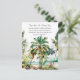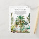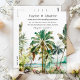 Den här eleganten och det vackra bröllop-vykortet med vattenfärg har en strand och handflatan träd. Texten kombinerar handskript och sans serif typsnitt för en snyggt och ett modernt utseende. Det här är perfekt för en sommarstrand eller ett tropiskt destinationsbröllop.