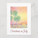 Jul i juli-tävlingen vykort med röd manustypografi och tropisk stranddesign med handflatan träd vid solnedgången. Med röd anpassade kan du lägga till egen information. Ett festligt sätt att tillföra en liten sommarpenna till firande i helgdag.