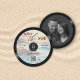 Ange tonen för bröllop med denna Music Bröllop spara datum designad för att se ut som en vinylpost i vintagen, med en romantisk, tropisk vattenfärgsbakgrund i stranden. Perfekt för ett strandbröllop för musiker, musiker älskare och återinspirerat bröllop, den här unika rundinbjudan innehåller klassiska rekorddetaljer om stil, musik noter och en snyggt elgitarr. Oavsett om du planerar en sten & roll bröllop, jazz-temat firande eller festival-stil-händelse, fångar den här designen musikalisk och kärlek. Anpassa enkelt dina uppgifter om bröllop och få redo att dansa till "jag gör".