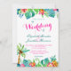 Tropical Berry Rosa Teal Blommigt Chevron Bröllop Inbjudningar