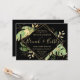 Denna elegant tropiska brunch och bubblande inbjudningskort för möhippan har exotisk lövning med guld-accenter mot svart bakgrund. Ett modernt geometriskt guld ram belyser texten från guld. Guld stänk accentuerar den botaniska utformningen och gör att stollig blir lite sofistikerat på inbjudan. Denna öoas inbjudan är perfekt för all möhippa som kallas utomhus, strand eller tropiska teman.