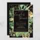 Det moderna tropiska parets inbjudan till möhippa innehåller grönt och guld handflatan, filodendron och fern löv i svart bakgrund. En elegant guld ram belyser texten från guld. Guld stänk accentuerar denna exotiska botaniska design och ger inbjudan till lite sofistikerat stollig. Denna öoas inbjudan är perfekt för alla utomhus-, strand- eller tropiska temainduschar.