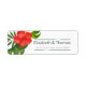 Dessa returetiketter i eleganten har en vit tropisk löv och vackra blommigtar i ljust rött. Använda den angivna mallen för att anpassa namn och adress. Sök i ID475 om du vill se andra produkter med den här designen, inklusive matchande bröllopsinbjudningar med mera.