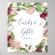 Denna skylt med kort och presenter med tropisk bris är perfekt för en elegant vår- eller sommartermin eller bröllopsfest. Den blomsterinspirerade designen har röda, vinröda, rosafärgade och vita blommor i en krans av akvarellfärgade tropiska gröna blad med en avspänd hawaiiansk känsla. Textraden längst ner på skylten kan anpassas med datumet, brudens och brudgummens namn eller ett kort meddelande som "Tack". Skylten kan användas för ett bröllop eller valfri händelse eller fest.